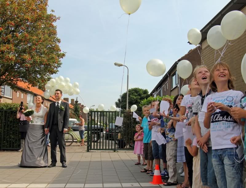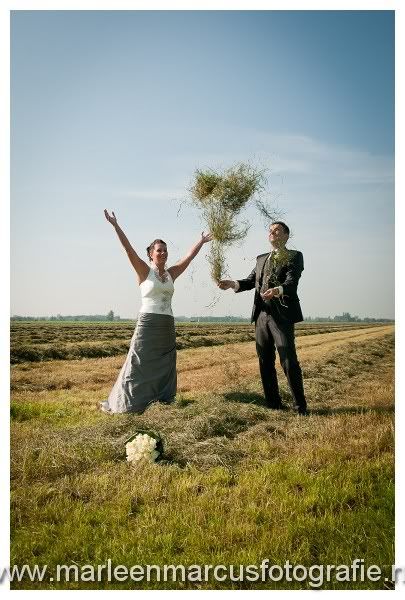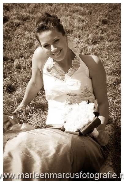 Hier datgene waar sommigen van jullie misschien wel op zitten te wachten: foto's van onze bruiloft! Dit is een selectie van foto's die ik van de fotografe alvast kreeg om op Hyves etc. te zetten. De banner zit erop omdat ze verkleind zijn en daardoor van te lage kwaliteit om mooi af te drukken. Zij wil natuurlijk zeker zijn dat haar foto's wel mooi zijn, slechte reclame anders. Het boek is inmiddels besteld en dan krijgen we alle gelukte foto's ook op dvd zodat we verder zelf kunnen bestellen.